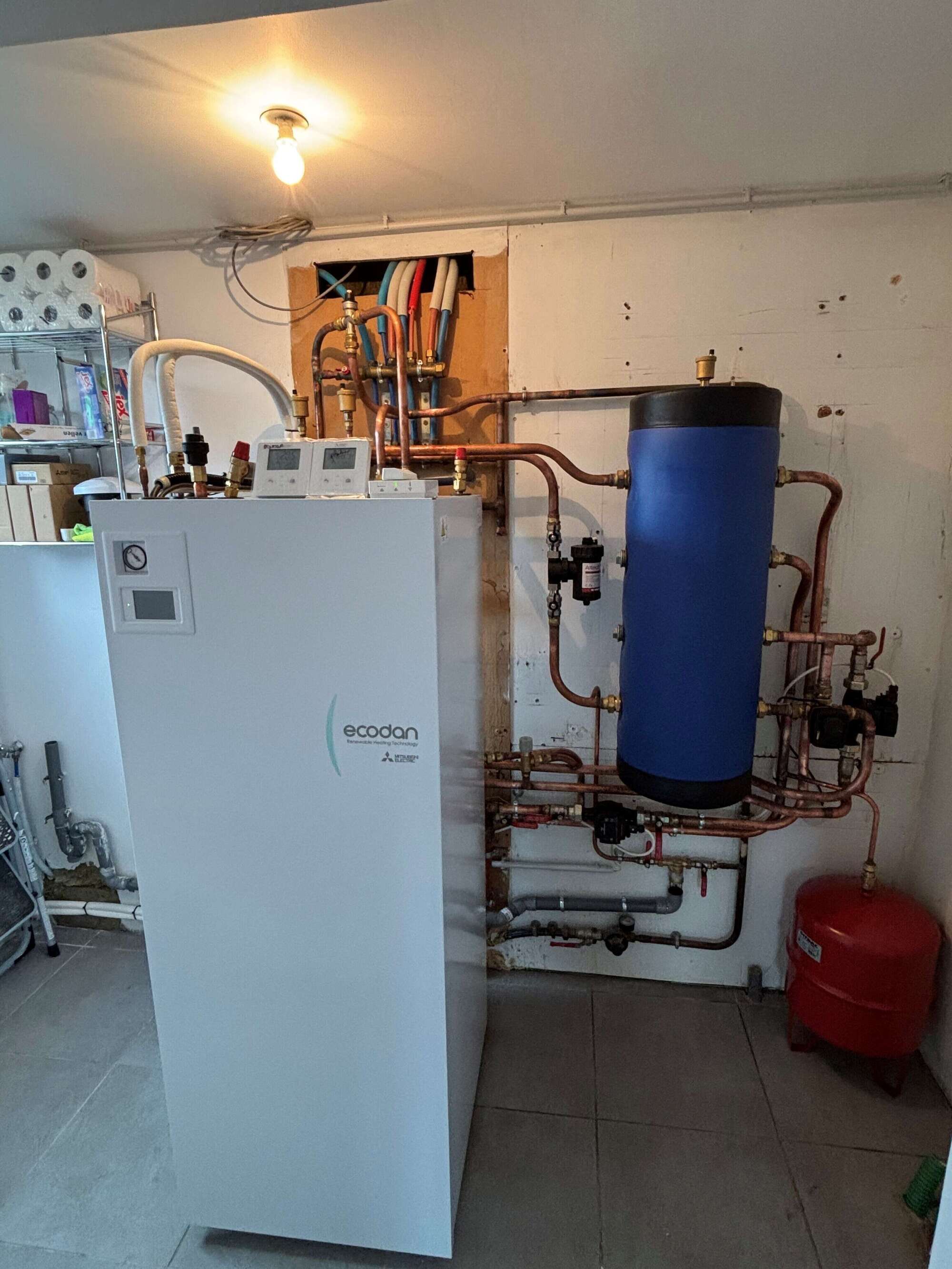 Installation et mise en service de deux pompes à chaleur MITSUBISHI 8KW ECO INVERTER avec production ECS 200L.